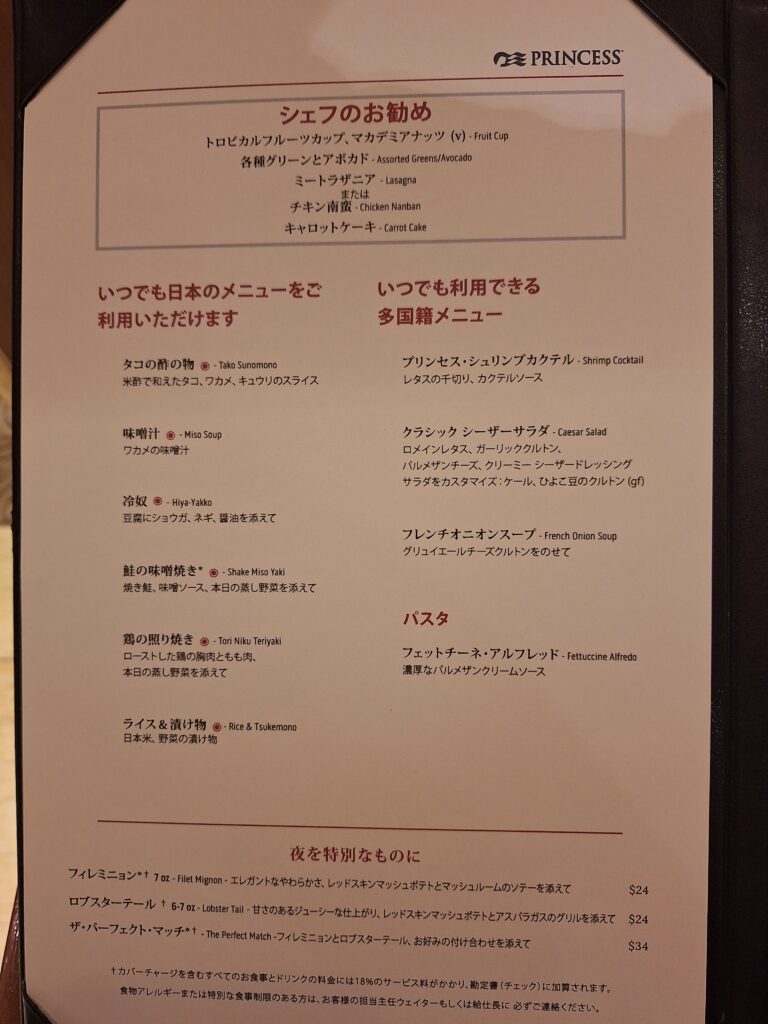今日は夏祭りがあるとの事だったので レストランには行かずホライゾンコートで夕飯を食べるとこにしました 食べには行かないけれどメニューはチェックしました(笑)