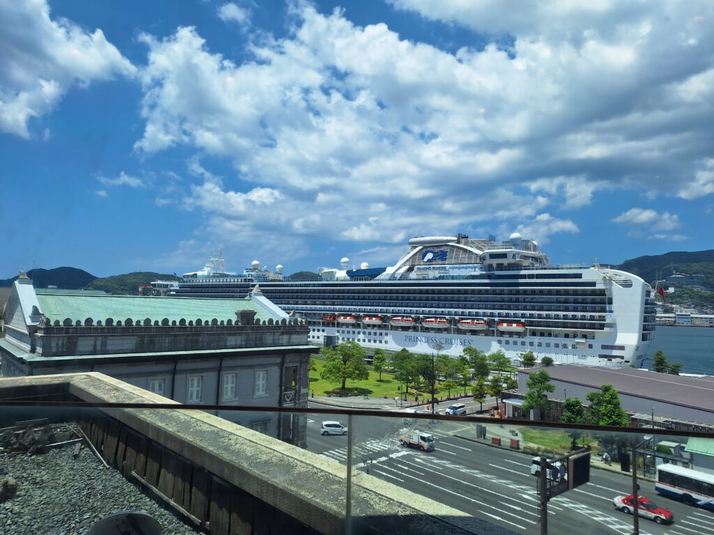 長崎下船 長崎港から見たダイヤモンド・プリンセス