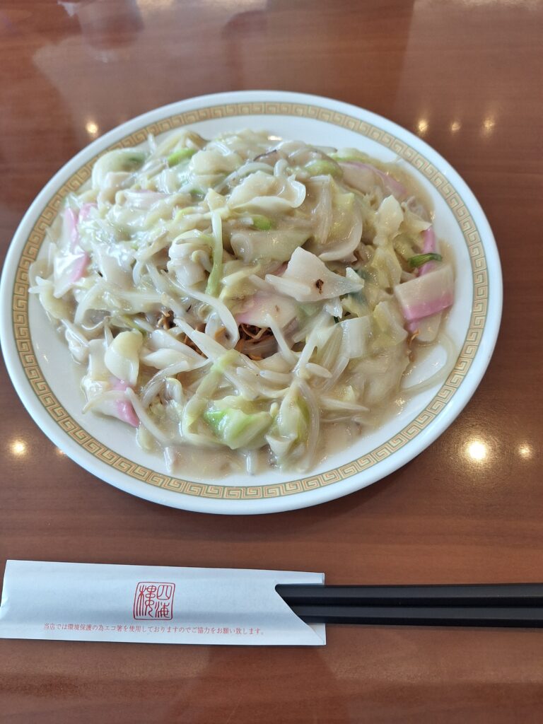 まずはじめに四川楼へ食事をしに行きましたオープン前に着きましたがもう長蛇の列が出来ていました 入店して30分たった頃でしょうか 席に着きました 私たちはちゃんぽん 炒飯 炒麺 太麺皿うどん 餃子 ごま団子 杏仁豆腐を注文 みんなでシェアしました(写真は炒麺です)