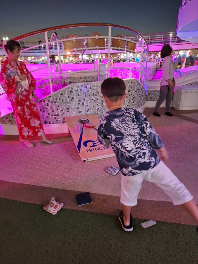 ダイヤモンド・プリンセス夏祭り 下の息子は顔ペイントして貰い 大はしゃぎで遊びました 上の息子は6年生なので顔ペイントはせず 型抜きを楽しんでいました 下の息子は終日航海日にプールでお友達になった子とも一緒に遊びました