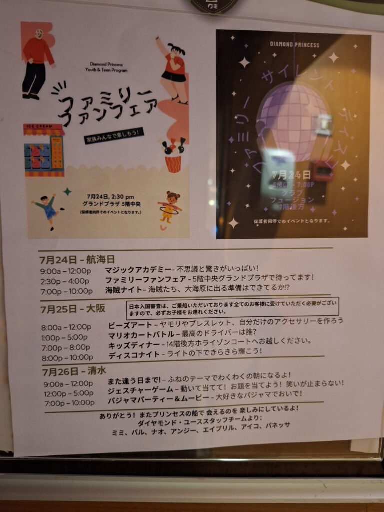 本日鹿児島に寄港予定でしたが…天候による進路変更のため 終日航海日になり予定になかった大阪に寄港することになりました