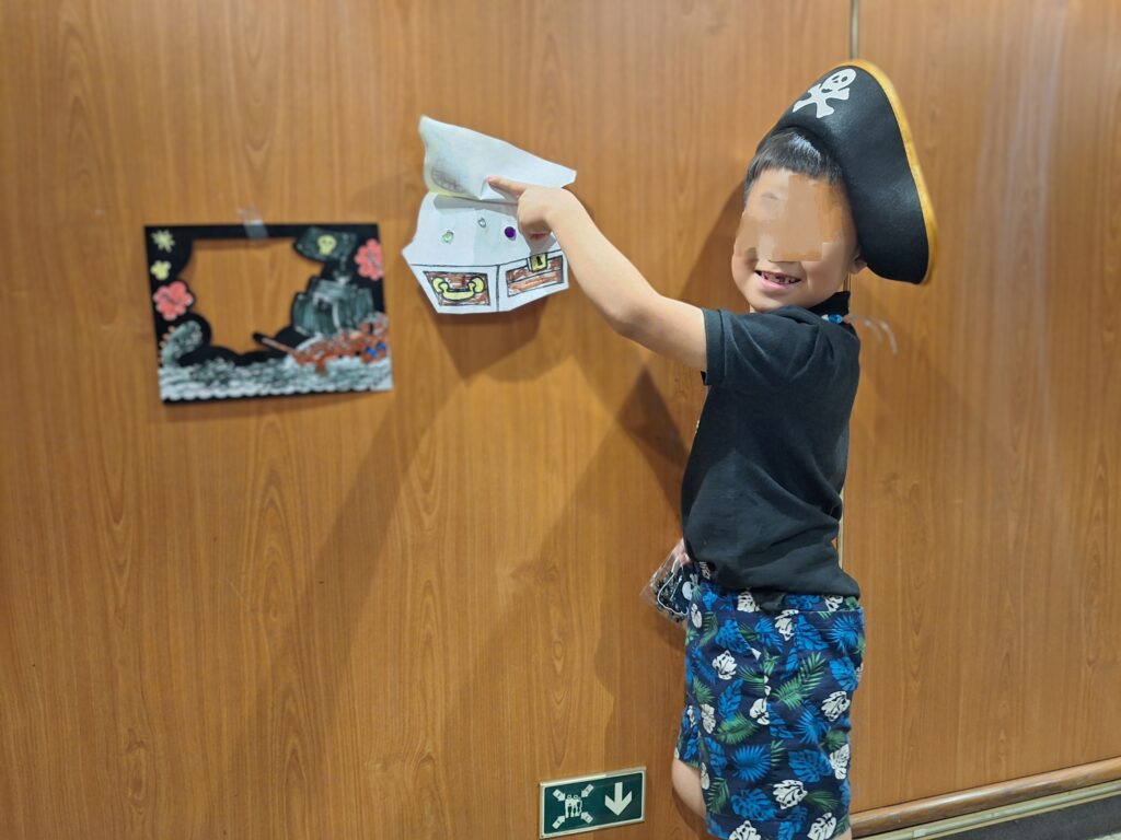 夕飯後下の息子はキッズセンターへ 海賊になって帰ってきました