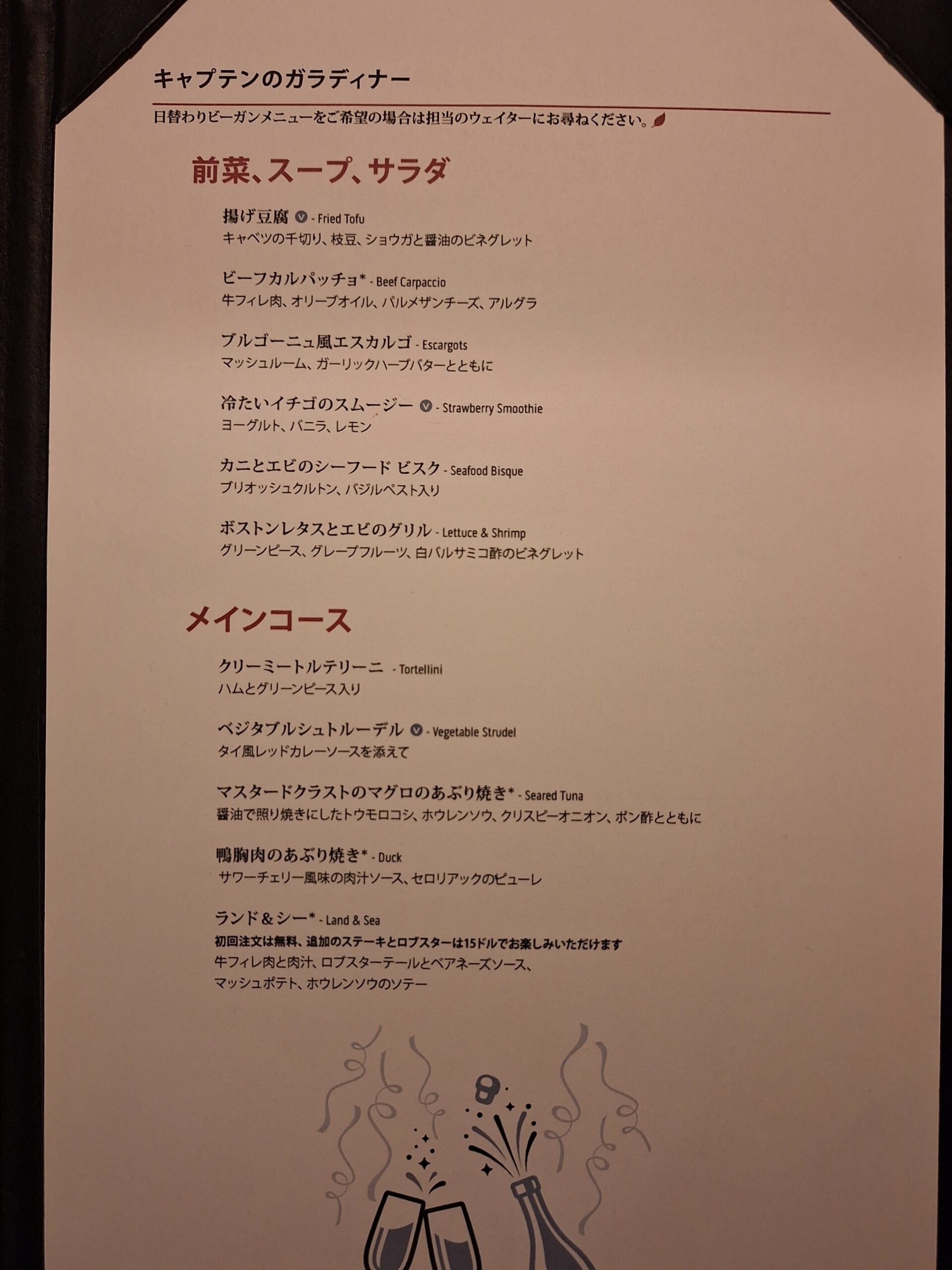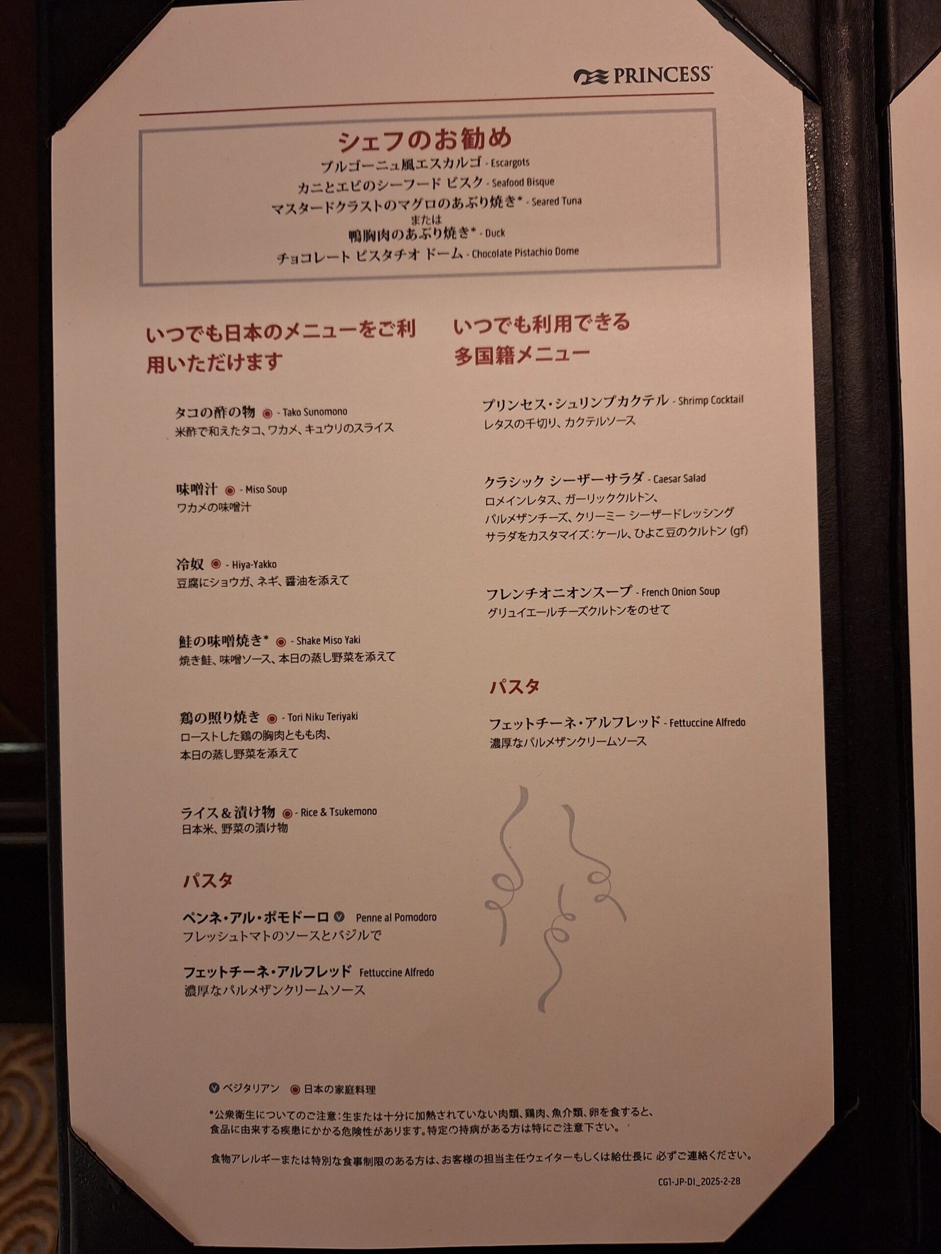 今日はダイヤモンド・プリンセスのメニューの中でもお気に入りのエスカルゴが食べれる日♥ランド&シーも大好きでいつも注文しています